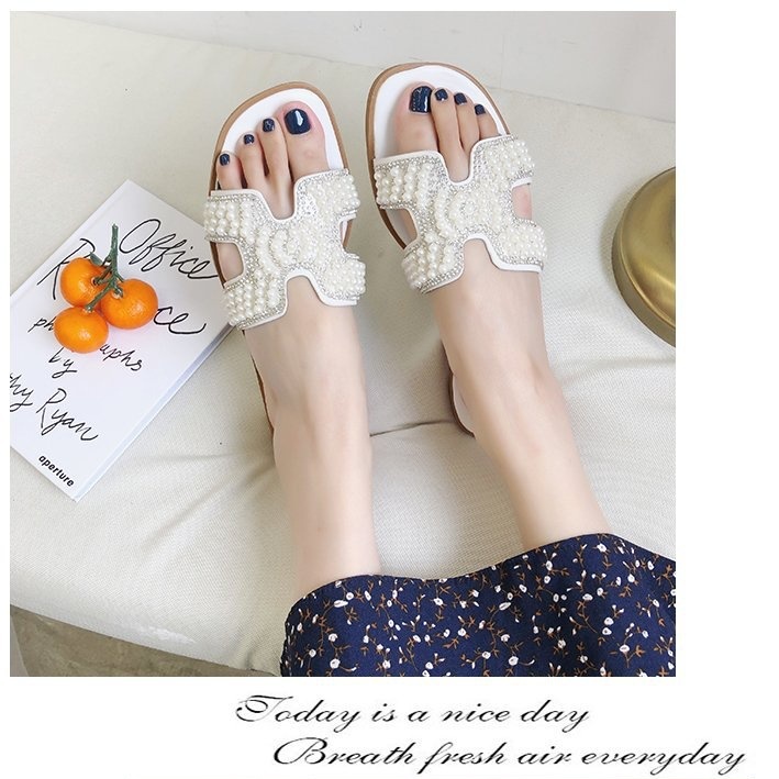 - 送料無料★新品 サマーサンダル パール ビジュー サンダル 履きやすい 可愛い 華やか おしゃれ★38/ホワイト