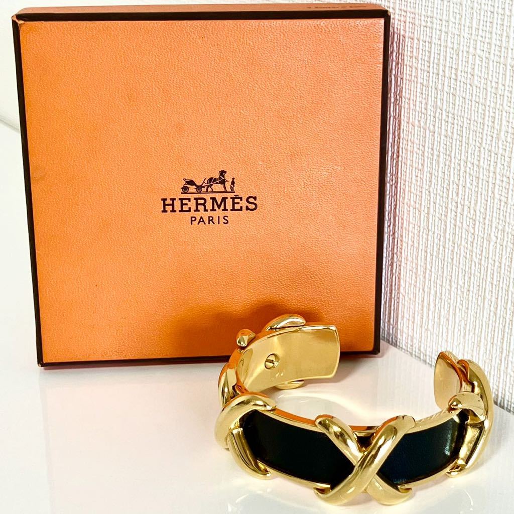 - 激レア HERMES エルメス クロス バングル ゴールド ブラック 黒