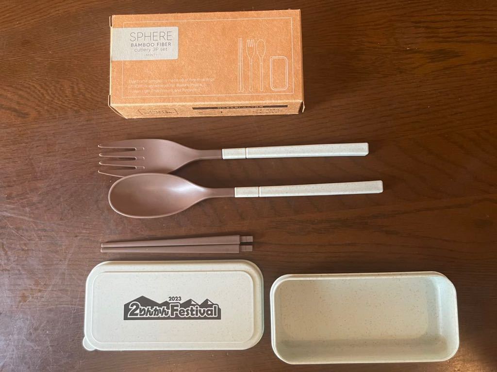 > バンブーファイバー配合 cutlery 3p set 2りんかん 新品 未使用品 アウトドア ピクニック ツーリングに携帯 スプーン フォーク 箸