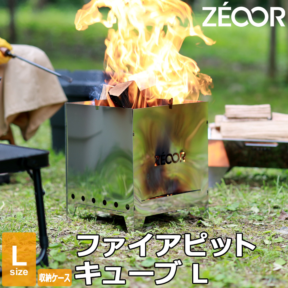 - ゼオール 焚き火台 小型 コンパクト キャンプ ファイアピットキューブL バーベキューコンロ 焚火台 五徳 収納ケース付き BG10-33