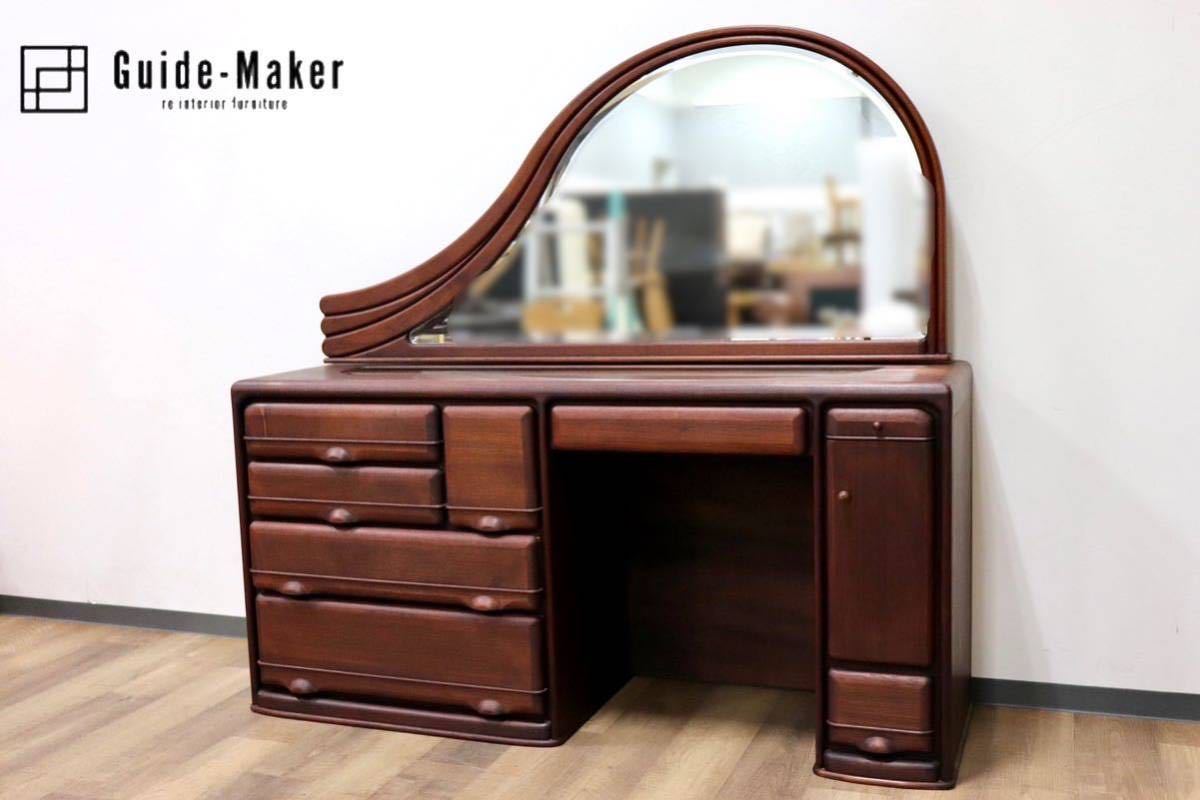 - GMGK280○工房家具 和製ヴィンテージ ドレッサー 鏡台 化粧台 メイク台 収納家具 チーク材 北欧スタイル 希少