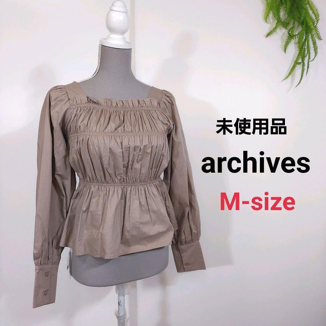 - 未使用品 archives ギャザー使い へプラム 長袖トップス 淡いココア色 Mサイズ アルシーヴ ボリューム袖79297