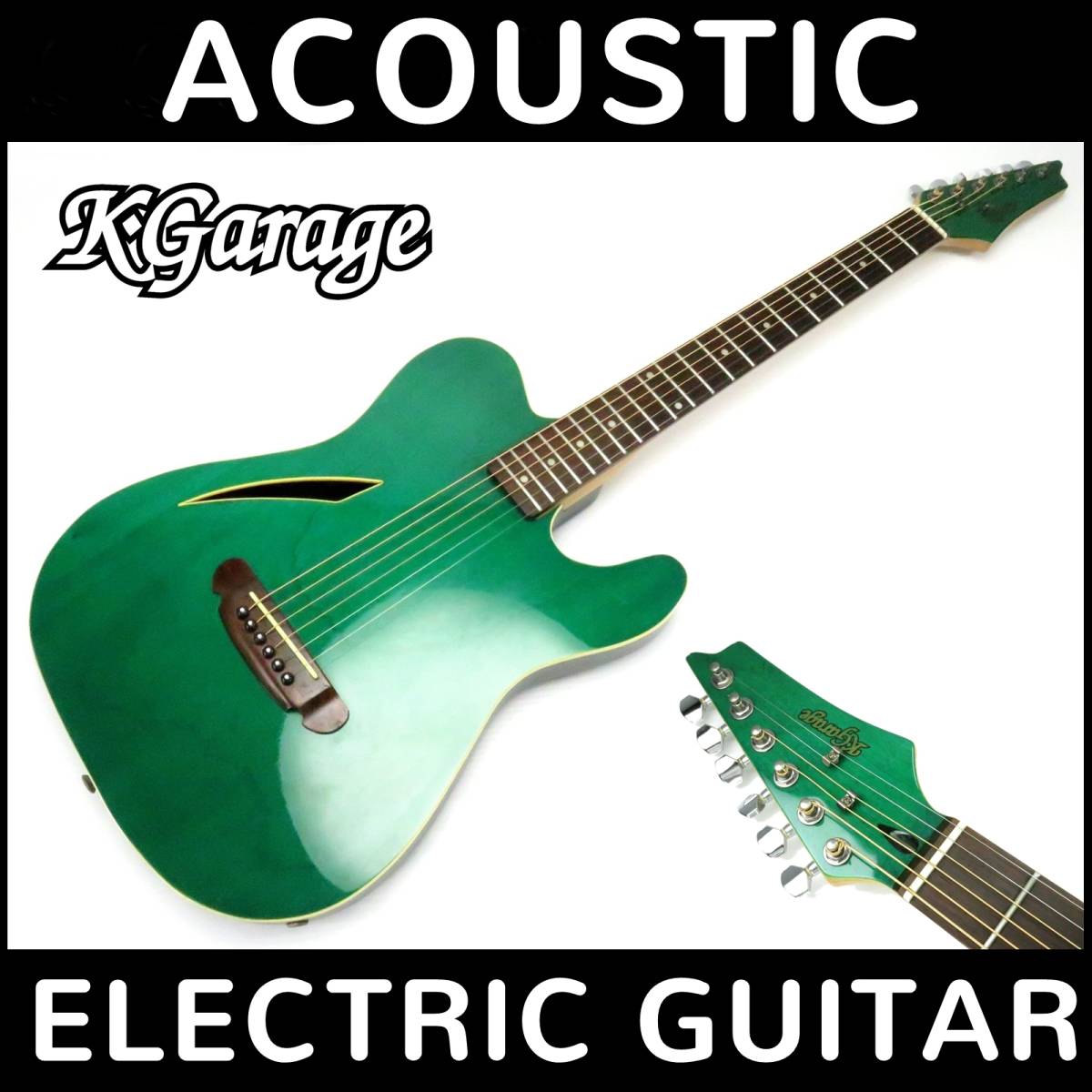 > ★希少現品限り ★早い者勝ち Kgarage Kガレージ シングル エレキ ヘッド ホロウボディ グリーン エレアコ アコースティック ギター アコギ
