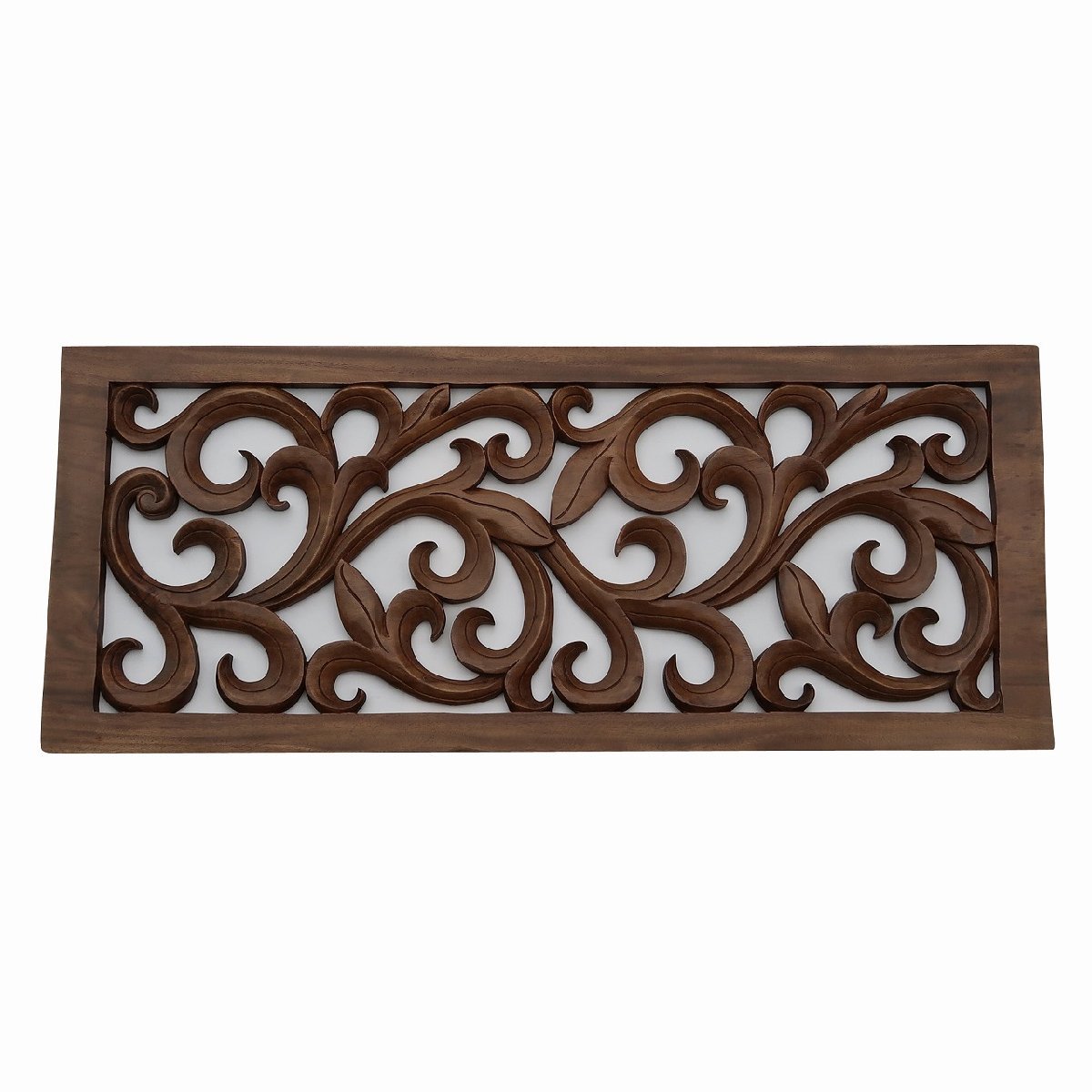 - 唐草模様の壁掛けレリーフ 100X40 スワール無垢材 アラベスク タペストリー 壁飾り 透かし彫り木彫り彫刻 YSA-050721