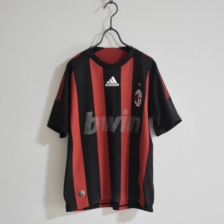 > 訳あり ACミラン adidas 刺繍エンブレム サッカーシャツ セリアA 赤黒