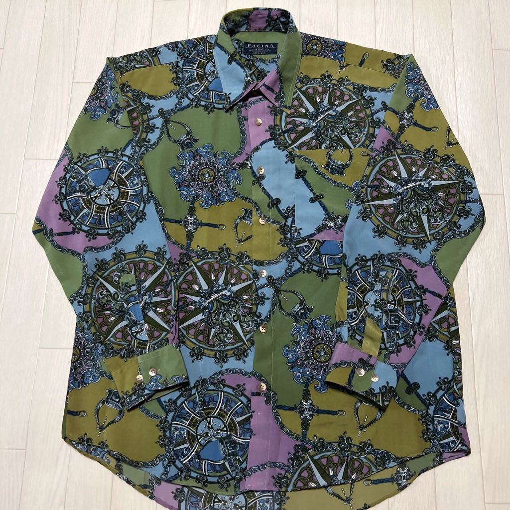 - PACINA 総柄 柄シャツ バロック 花柄 和柄 レトロ アート ビンテージ 長袖シャツ ポリエステル100%