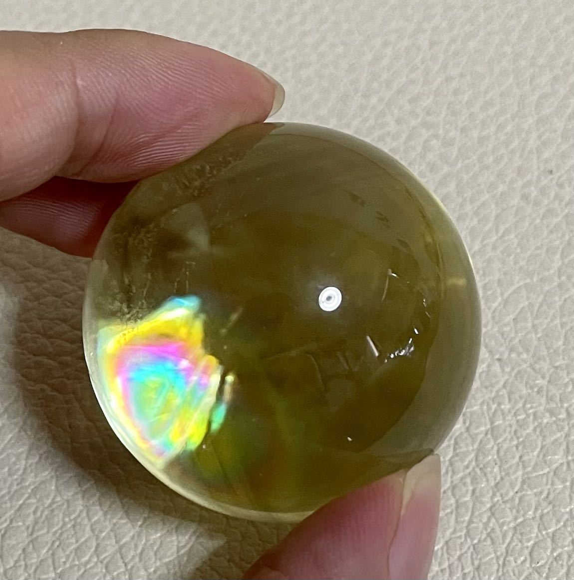 - シトリン 高品質黄水晶 002 アイリス 虹入 レインボー クリスタル 天然石スフィア 丸玉 置物インテリア 幸運 財運UP 魔除 お守 ラッキー