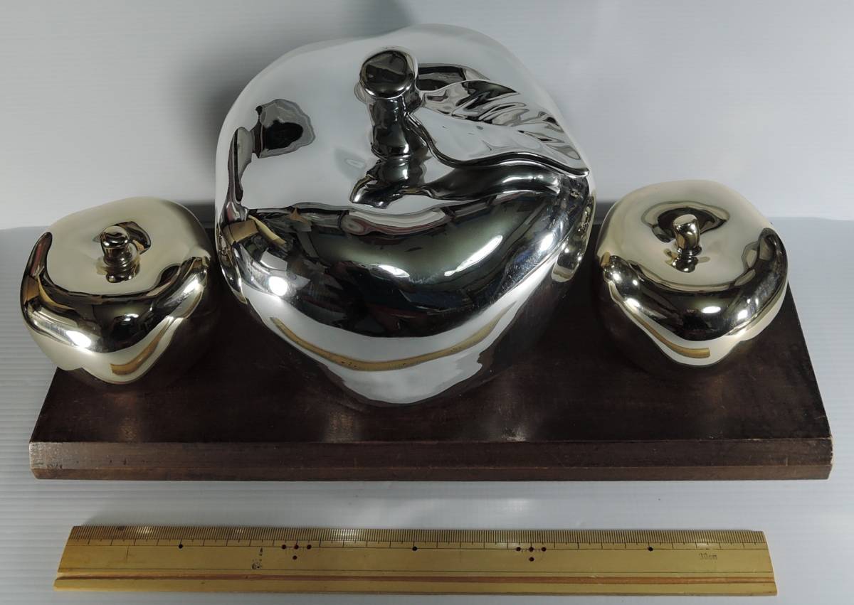 - ☆000■金色 銀色 メタリック リンゴ/りんご/林檎 置物 陶器製 3個■