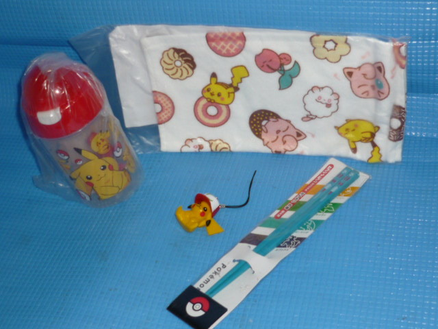 - b★未使用・非売品★劇場版サトシのピカチュウの携帯ストラップとポケモン お箸他4点