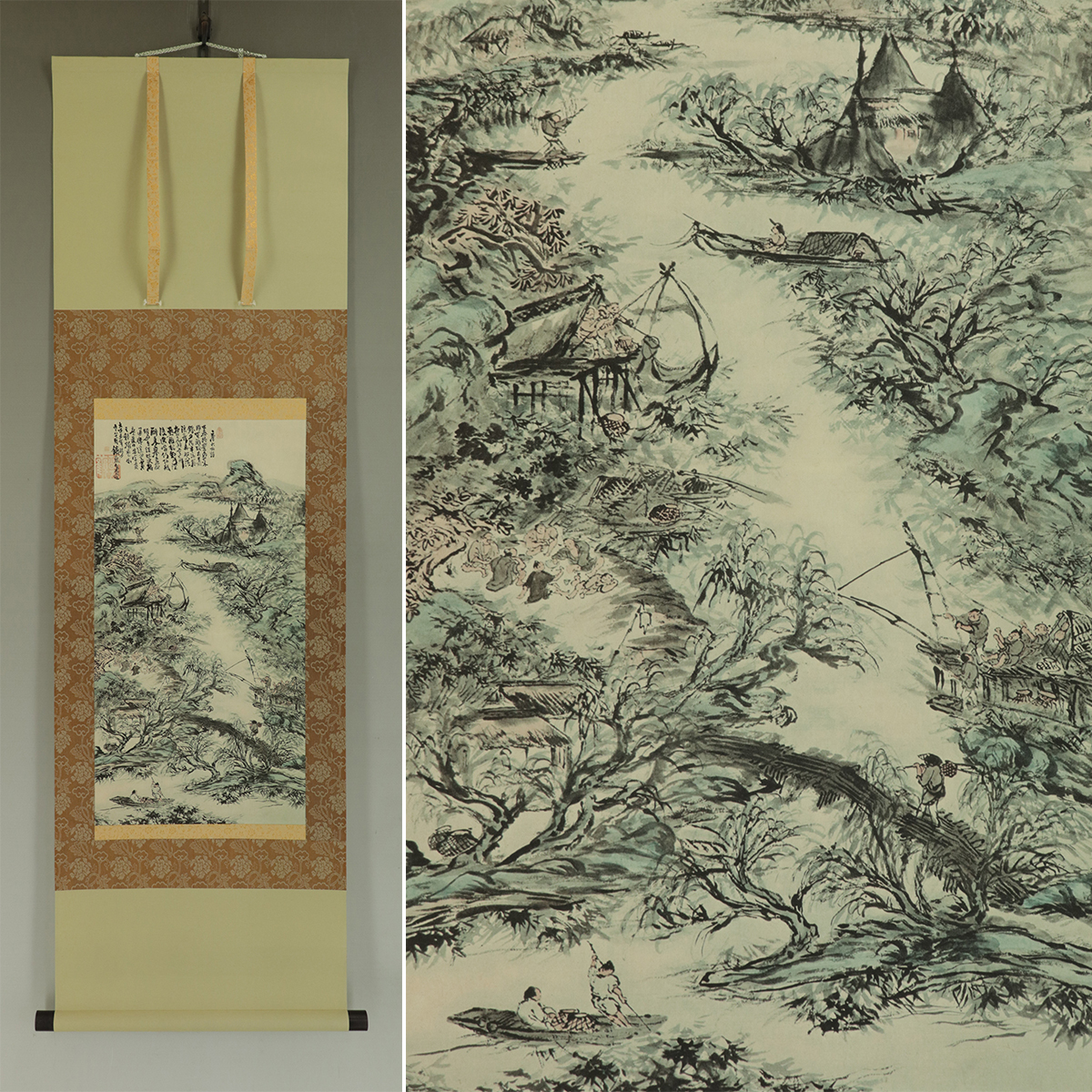 - 【巧芸】富岡鉄斎【大江捕漁図】◆紙本◆合箱◆掛軸 v10125