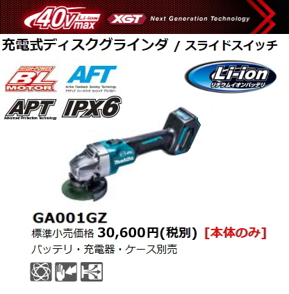 - マキタ 100mm 充電式 ディスクグラインダ GA001GZ 本体のみ 40V 新品