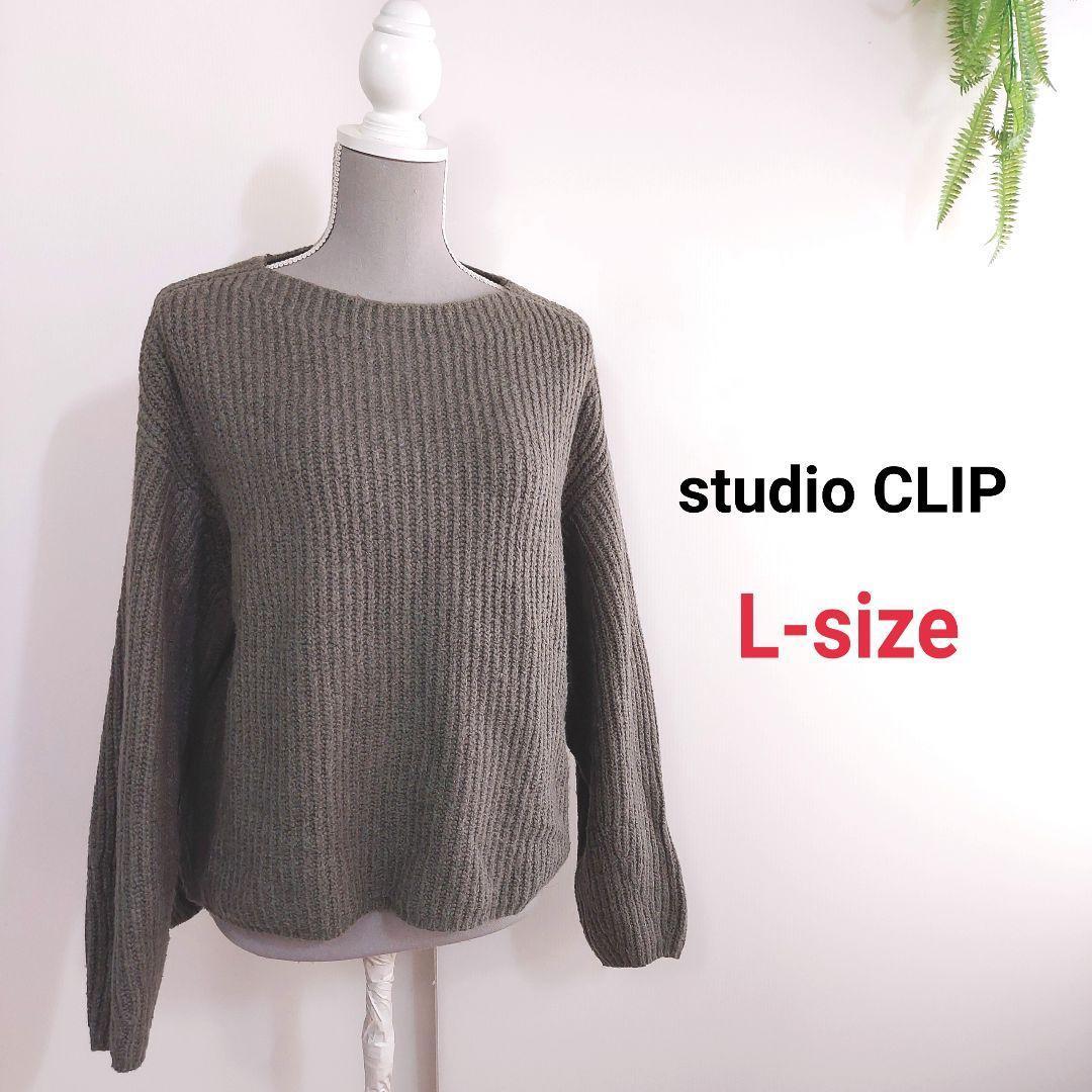- studio CLIP ゆったりデザイン・コットン混ニット 暗めのオリーブグリーン 表記サイズL 79754