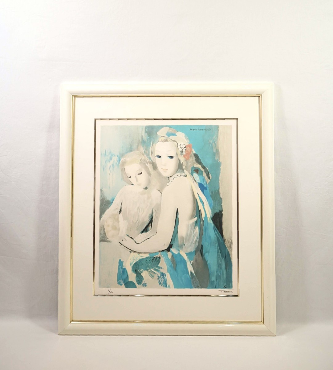 - 真作 マリー・ローランサン デジョベール工房大判リトグラフ「夢想 S」画 48×58cm 淡く愛らしいパステル色 輪郭線無い蔭や濃淡で表現 7924