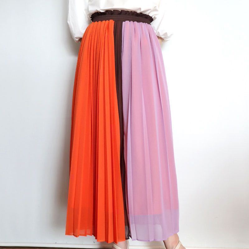 - ¥26400 即決 新品 Coomb カラーシフォンプリーツスカート オレンジレッド パープル クーム バイカラー ロングスカート シフォンスカート