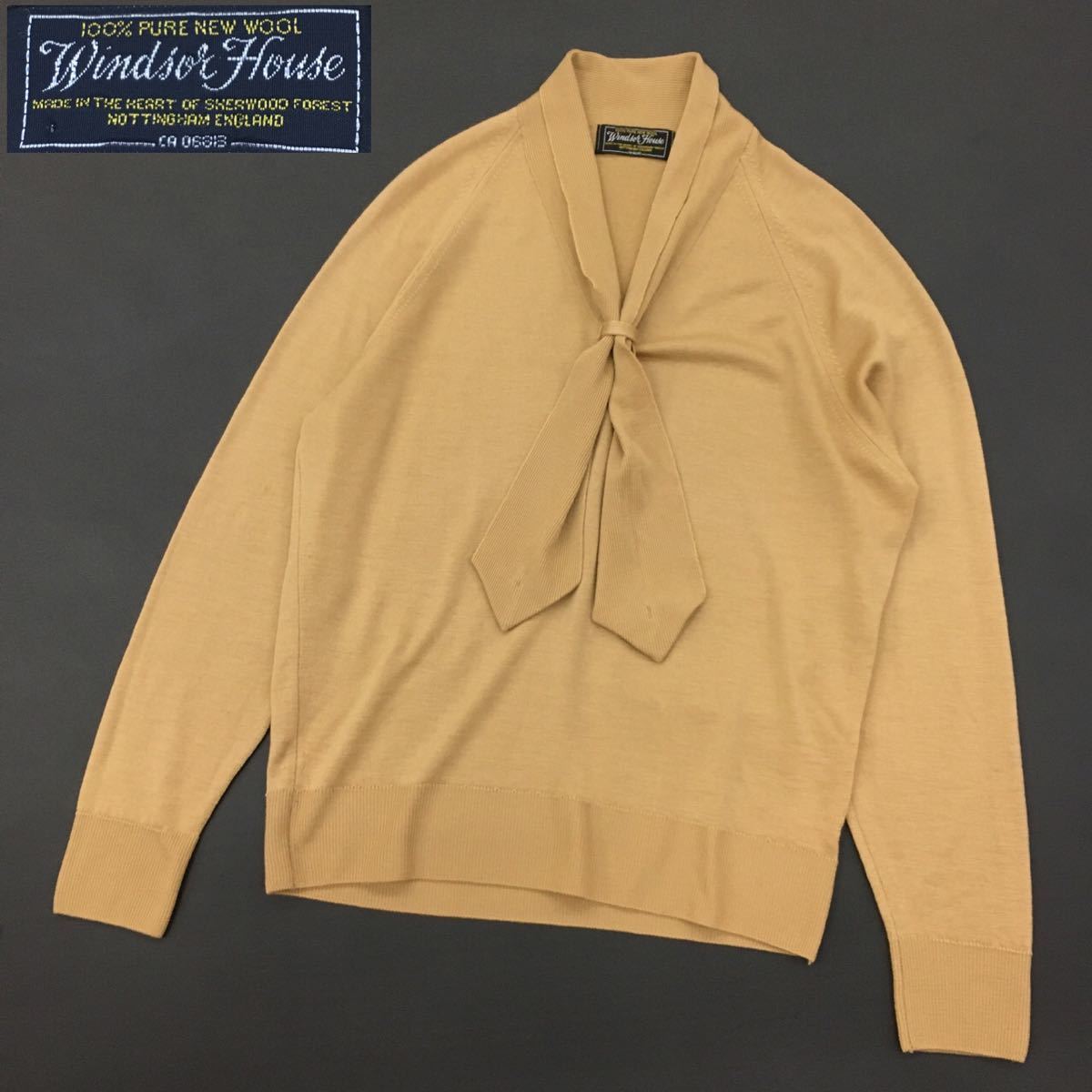 - ウィンザーハウス イングランド製 ピュアニューウール ボウタイ ニットセーター プルオーバー ラグランスリーブ 長袖 レディース サイズ40