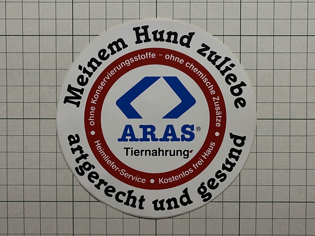 - ドイツ 古いステッカー:ARAS ペットフード 広告 ビンテージ 海外 +Fa