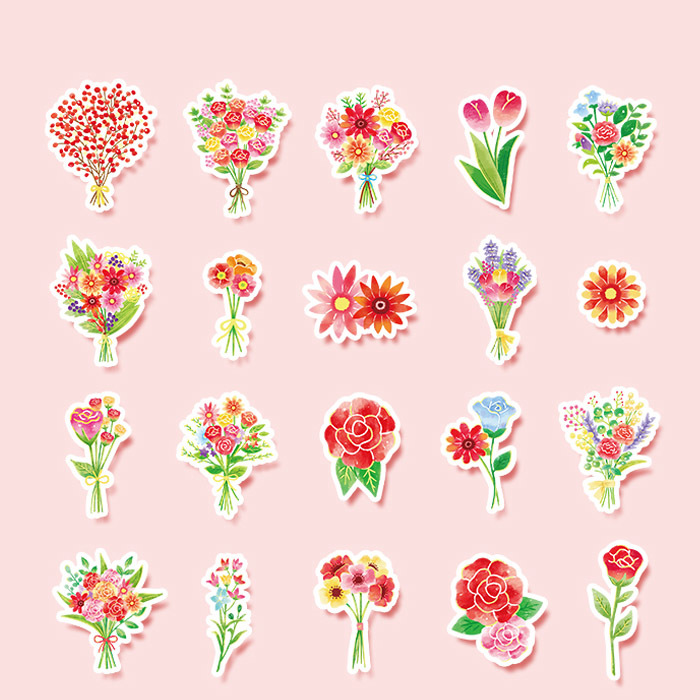 > 40枚 シール 花 フラワー 花束 ブーケ 植物 イラスト アンティーク ビンテージ ステッカー デコステッカー コラージュ レトロ 0542-5