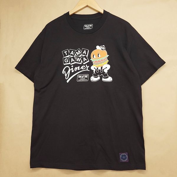 > 261470【Lサイズ】TAMAGAWA DINER M&M MASSES PRINT T-SHIRT コラボ プリント 半袖 Tシャツ ブラック 23-MT-TD02 マシス☆2▼