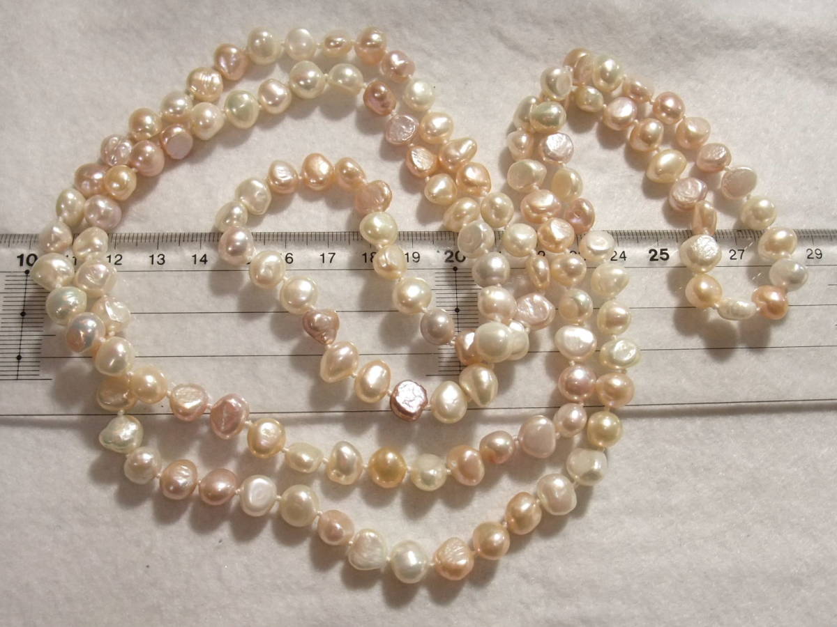 - 153-3綺麗♪極上ルースも!本物淡水真珠パール金具なしエンドレスタイプロングネックレス天然ナチュラルカラー☆高品質な淡水