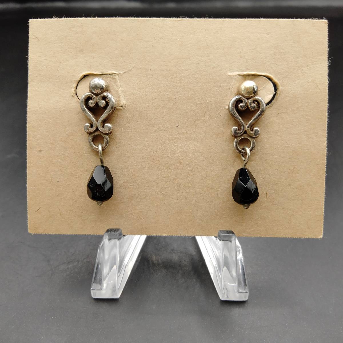 - シルバー オニキスカラー ストーン クラシック デザイン ビンテージ ピアス イヤリング 昭和レトロ アクセサリー ジュエリー 輸入 8S-I