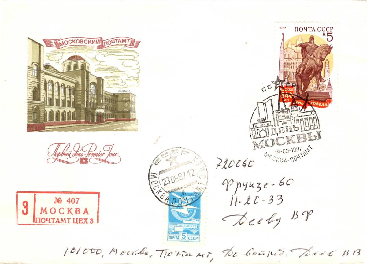- 1987 ソ連 モスクワ840年記念 キエフ大公国 モスクワ局 FDC 書留カバー