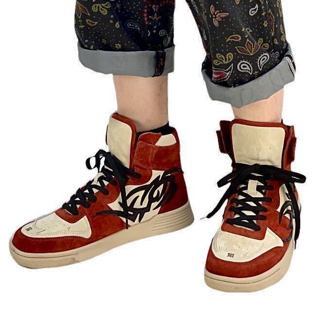 - 新品 MISBHV ミスビヘイブ スエード トライバル レザー装飾 ハイカットスニーカー 白赤黒 AJ1 セピアブラウン シカゴカラー ハイストリート