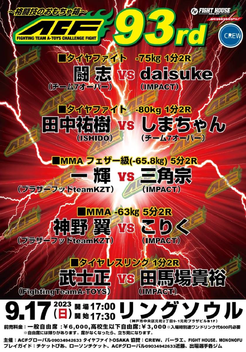 - 【ACF93rd】タイヤファイト 田中祐樹 vs しまちゃん 闘志 vs Daisuke【2023年9月17日・RING SOUL】
