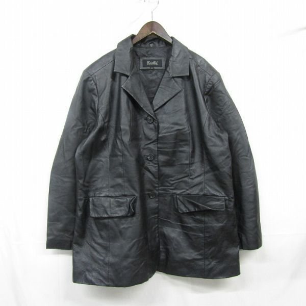 - 本革 ビックサイズ 2X レザー ジャケット コート ブルゾン ブラック 古着 ビンテージ 3O0302