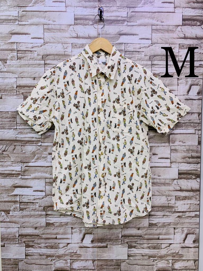 > M POWER TO THE PEOPLE パワートゥーザピープル オフホワイト 総柄 プリント 半袖シャツ シャツ メンズ