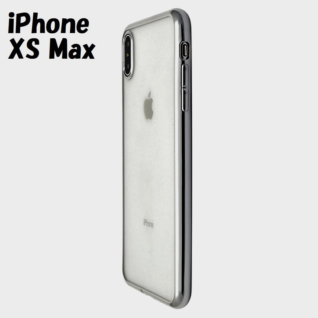 > iPhone XS Max:メタリック カラー バンパー 背面クリア ソフト ケース★シルバー 銀