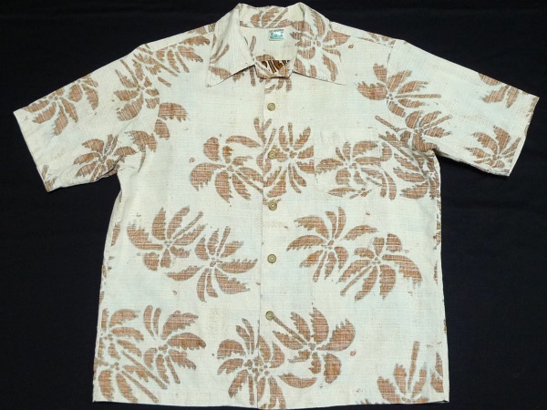 > 希少品ヴィンテージ[ISLANDERアイランダー]半袖リバースプリントバニランハワイアンシャツXLベージュパームツリー柄