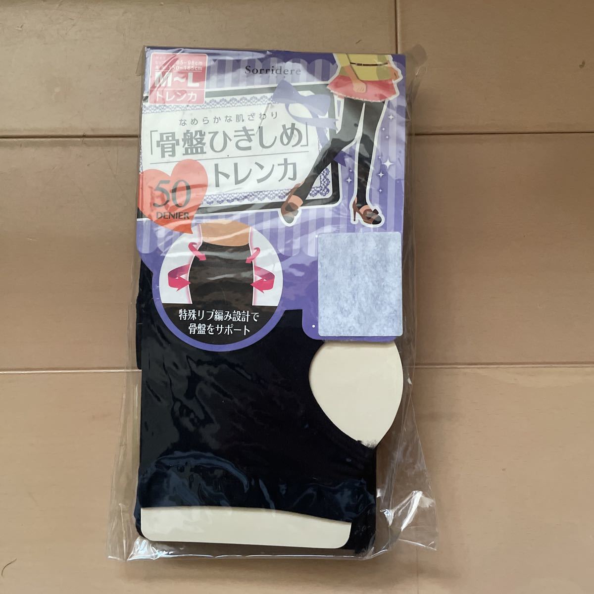 - 送料無料 新品 骨盤ひきしめトレンカ 黒ブラック M-L 50デニール なめらかな肌ざわり 特殊リブ編み 送料込み