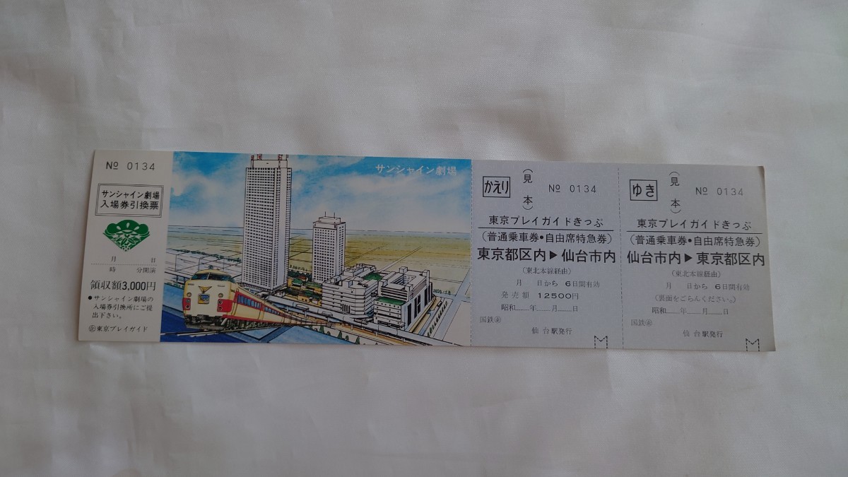 - △国鉄・見本△仙台→都区内 東京プレイガイドきっぷ 往復(普通乗車券・自由席特急券)