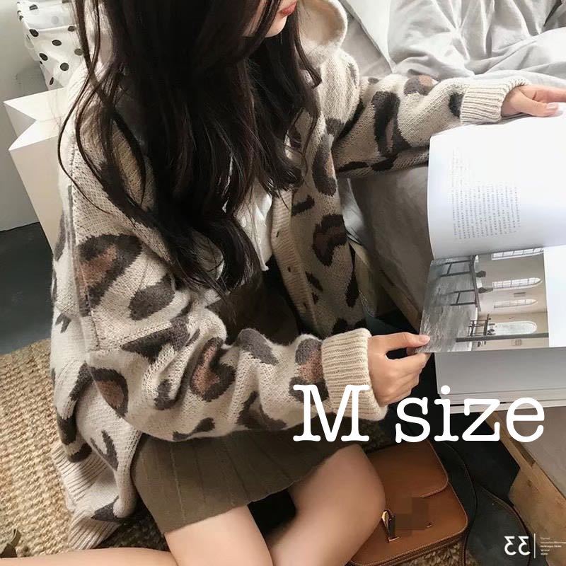 - カーディガン セーター 豹柄 ニット アウター 長袖 ビッグシルエット ベージュ M