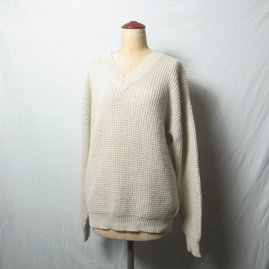 > Three dots スリードッツ ワッフル Vネック ニット セーター / 銀糸 ラメ レディースニット アルパカ ブランド古着