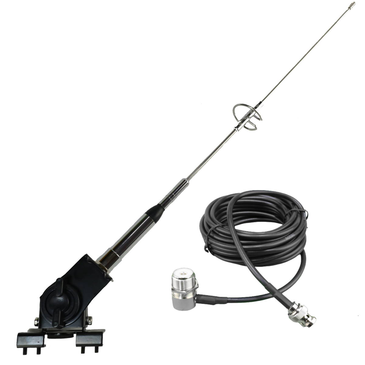 > 約45cmデュアルアンテナ 2軸可動式ハッチバック/トランクアンテナ基台 RG58(3D-2V相当)同軸ケーブル5m MJL-BNC接栓付 【Yahooフリマ対応】