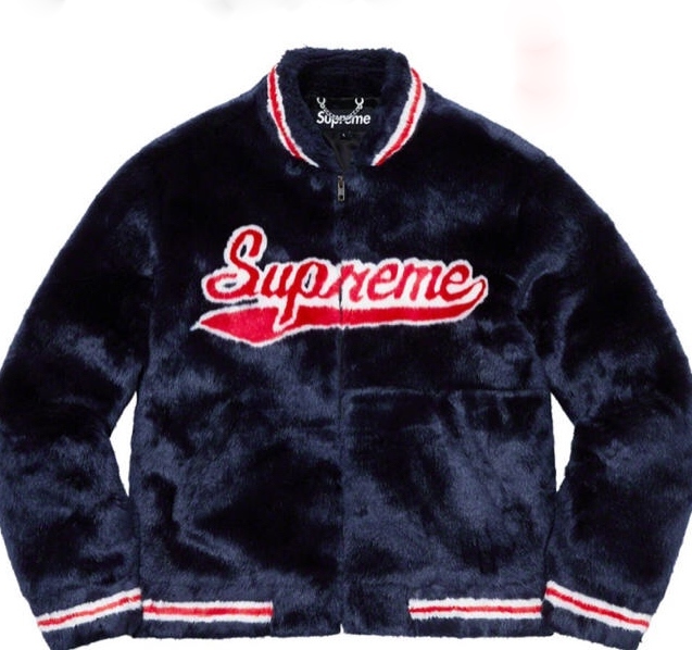 > h737新品シュプリーム フェイクファーバーシティジャケット ブルゾン ネイビーサイズM Supreme Faux Fur Varsity Jacket