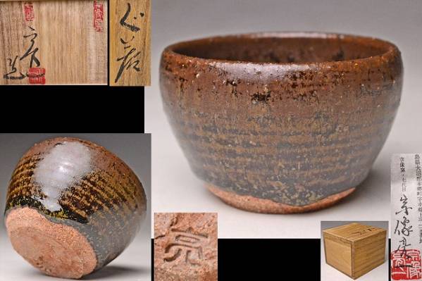 - 宗像亮一 ★ 会津本郷焼ぐい呑 ★ 共箱栞 ★ 鰊鉢の鉄釉 ★ 検宗像利浩
