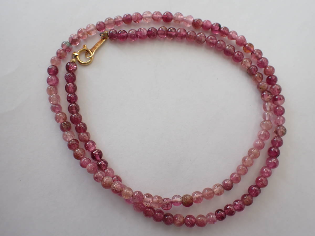 - K18 ゴールド留具 天然トルマリン ピンクカラー ネックレス 珠約4mm レディースアクセサリー a