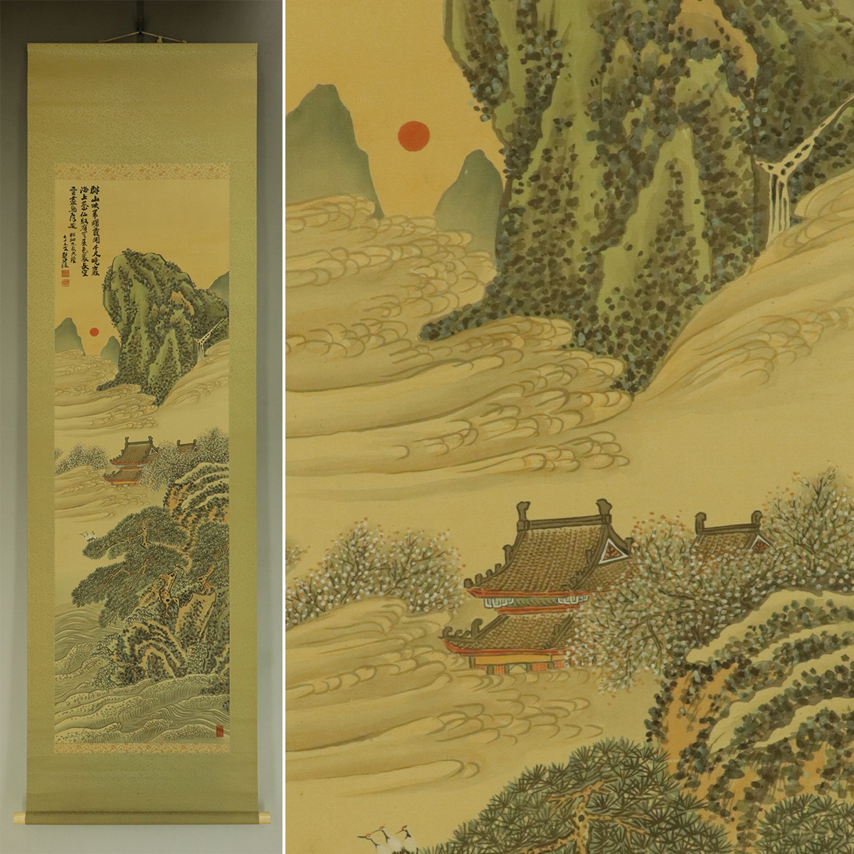 - 【真作】渡辺翠涯【彩色山水図】◆絹本◆掛軸 u09016