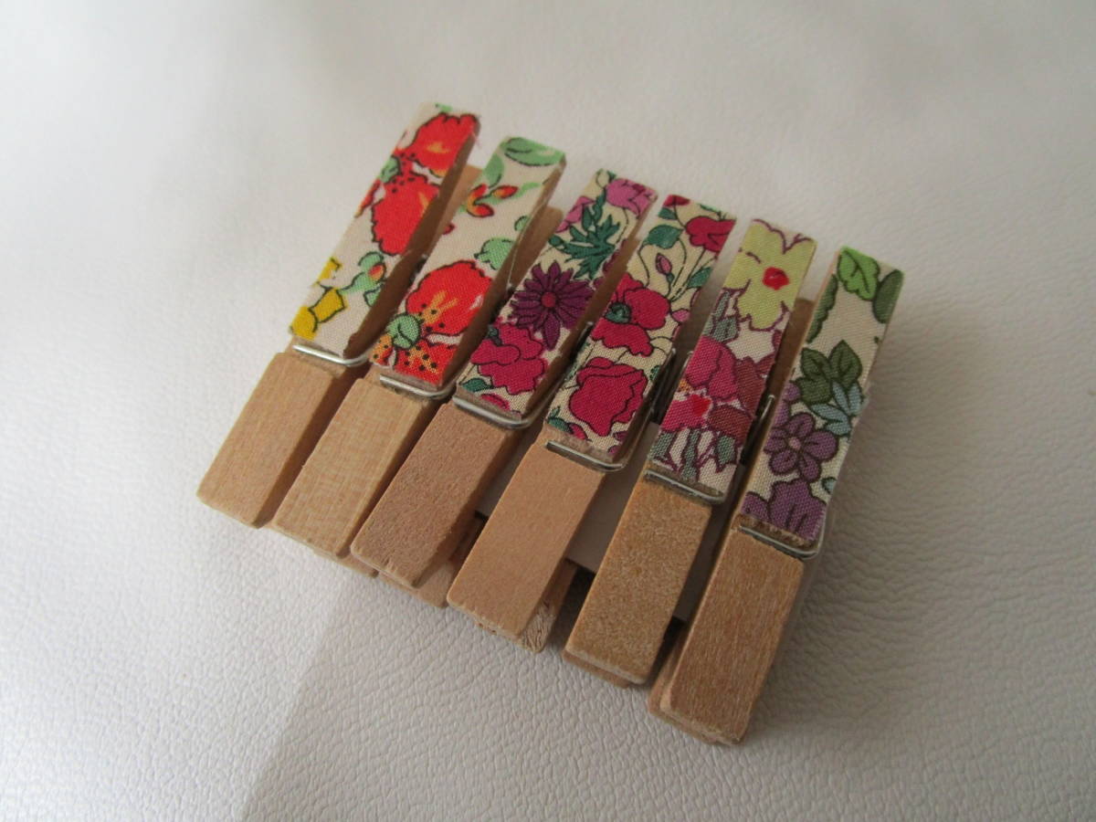 - 木製ミニクリップ リバティプリント 6個 未使用品 一部ハンドメイド