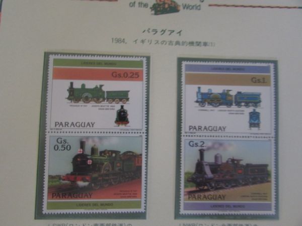 - D 世界の鉄道 パラグアイ イギリスの古典的蒸気機関車-1 4種完 1984