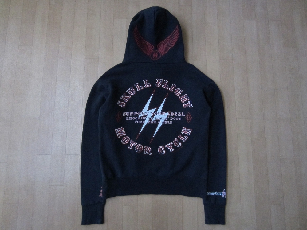 - 00's 日本製 スカルフライト ベンチレーション パーカー S ブラックSKULL FLIGHT プルオーバー スウェット フーディー ライダース バイカー