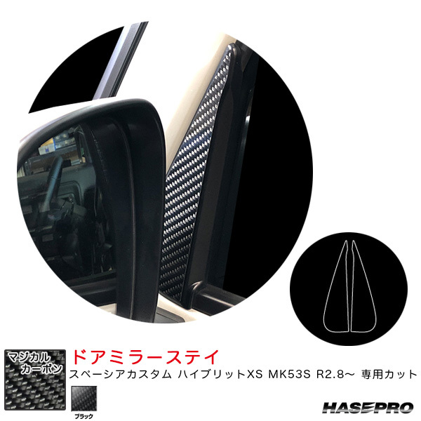 - マジカルカーボン ドアミラーステイ スペーシアカスタム ハイブリットXS MK53S R2.8~ カーボンシート【ブラック】 ハセプロ CDMSSZ-1