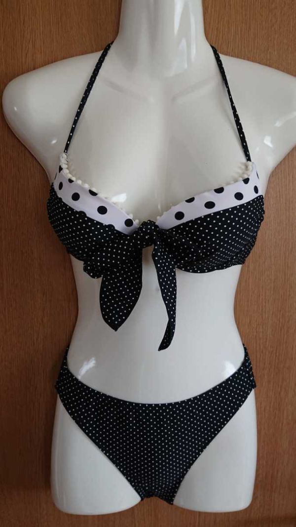 - ☆黒×白☆水玉柄のビキニ2点セット☆7S☆ワイヤー入り☆イオン株式会社☆