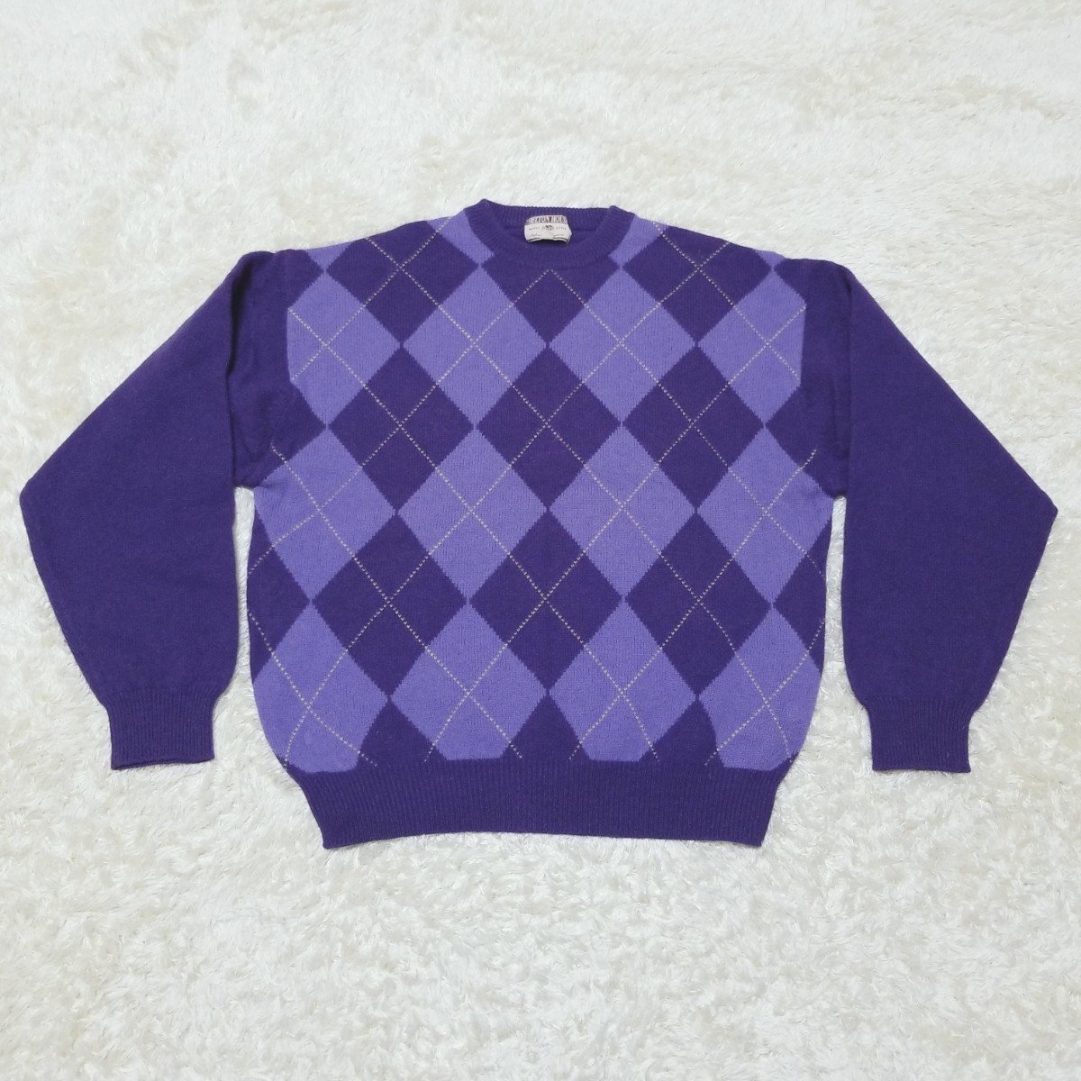 - Y983 良品★MELTON HOUS メルトンハウス ウール100% ニットセーター トップス 長袖 丸首 パープル系 チェッカーメンズ M 個性的 オシャレ