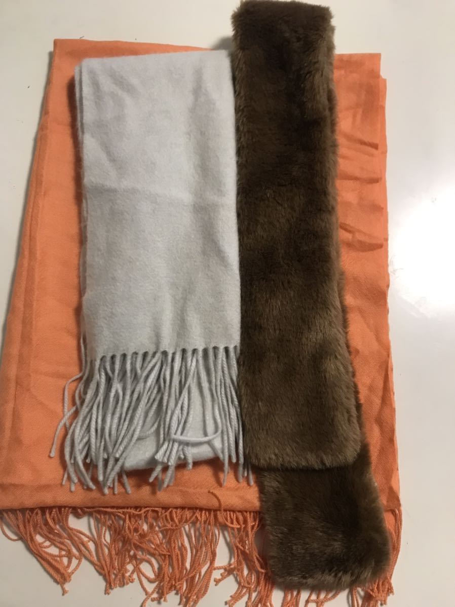 - 美品 ストール マフラー 3点セット パシュミナ ショール 大判 即決あり