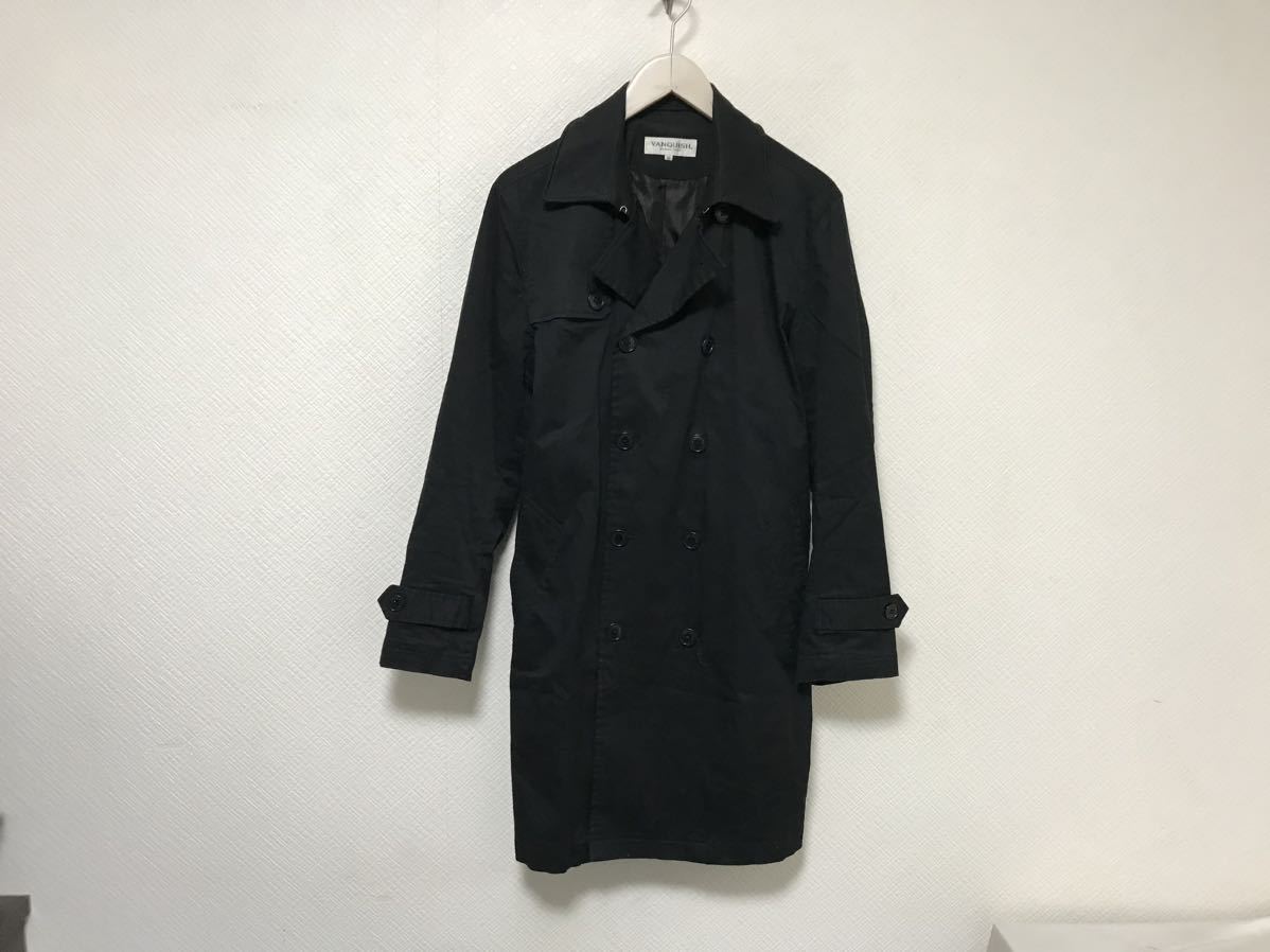 - 本物ヴァンキッシュVANQUISHコットンロング丈トレンチコートジャケットサーフワークアメカジビジネススーツメンズ黒ブラックM