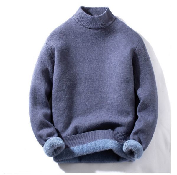 > SALE! あったか ニット セーター メンズ 防寒トップス 春秋冬用 裏ボア カットソー 厚手 シンプル 無地 ブルー2XL [サイズ 色 選択可]