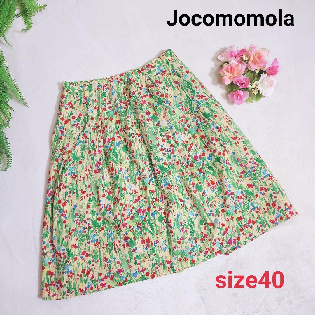 - Jocomomola ボタニカル花柄スカート 膝丈フレア リバティ 表記サイズ40 L イトキン ホコモモラ レーヨン素材 Sybilla シビラ 緑グリーン赤